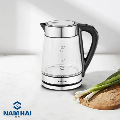 Bình đun siêu tốc Hafele thiết kế nhỏ gọn sang trọng, thanh lịch, phù hợp với mọi không gian trong gia đình. Với chất liệu bình bằng thủy tinh trong suốt chịu nhiệt tốt, dễ dàng quan sát nước bên trong, chất liệu đảm bảo an toàn cho người dùng.