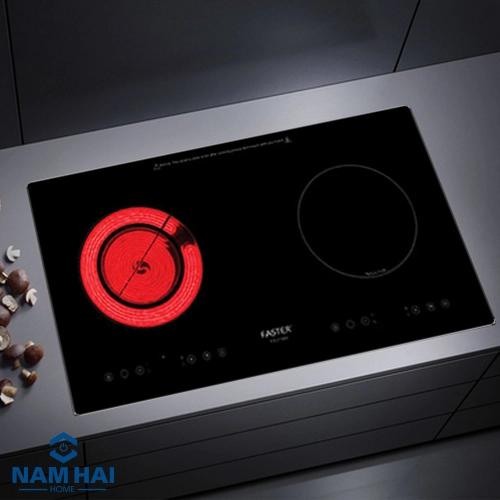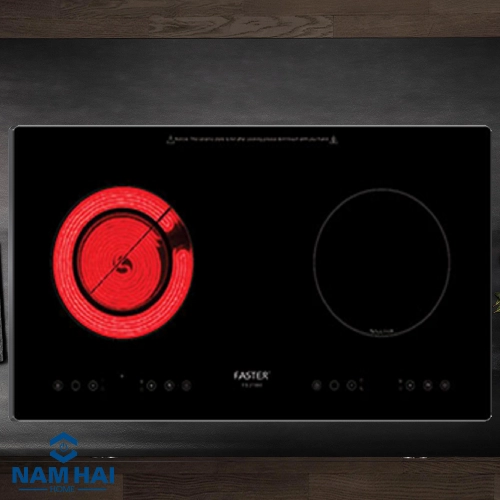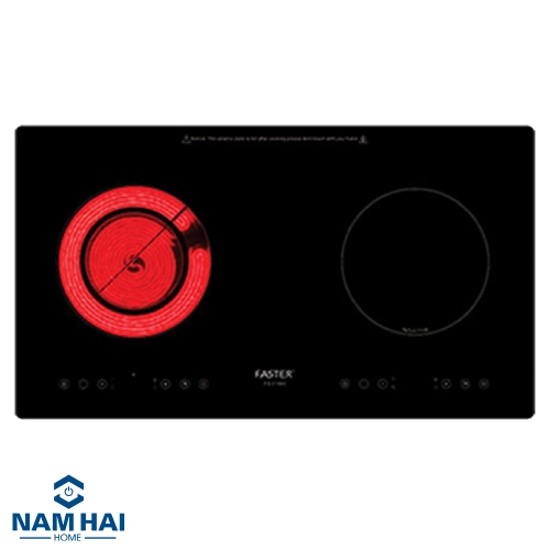 Bếp điện từ Faster FS 218CIH sản xuất và nhập khẩu chính hãng chính, phân phối bởi Nam Hải. Là một trong những dòng bếp điện từ mang thương hiệu Faster được sản xuất trên dây chuyền công nghệ tiên tiến với nhiều tính năng hiện đại và hữu ích dành riêng cho người nội trợ. Bếp với hai vùng nấu công suất lớn được trang bị tính năng thông minh, độ an toàn cao, đảm bảo an toàn tuyệt đối cho người sử dụng. Bếp điện từ Faster FS 218CIH sử dụng những linh kiện cao cấp đạt tiêu chuẩn châu Âu. Mặt kính siêu bền Vitroceramic Eurokera đem lại cho bếp cảm giác rất sang trọng và tinh tế. Mặt bếp tản nhiệt nhanh và được cách điện an toàn với các linh kiện điện tử bên trong, bạn có thể yên tâm sử dụng mà không lo bị bỏng hay điện giật. Đây cũng là loại kính có khả năng chịu nhiệt cao, chịu lực và chống trầy xước, dễ dàng vệ sinh. Bếp từ Faster FS 218CIH có cấu tạo thân vỏ bằng thép không gỉ với hệ thống khe thoát nhiệt được bố trí hợp lý xung quanh kết hợp với hệ thống quạt làm mát giúp bếp vận hành ổn định và liên tục trong thời gian dài. Bếp điện từ Faster FS 218CIH trang bị bảng điều khiển cảm ứng dạng ẩn độc lập cho từng vùng nấu cùng nhiều tiện ích được cài đặt sẵn. Siêu nhạy, trực quan dễ dàng sử dụng và phù hợp với nhiều lứa tuổi. Bếp không kén nồi do có vùng nấu hồng ngoại. Bạn có thể sử dụng tất cả các loại xoong nồi từ nồi đất, gang, sành, hay inox…. Bếp Faster FS 218CIH có hai vùng nấu : một hồng ngoại và một từ. Bên vùng nấu hồng ngoại (bên trái) có kích thước và công suất với 2 vòng nhiệt là 2000W, vùng từ có thể đạt mức công suất tối đa Booster 2000W. Tổng công suất bếp là 4000W. Bằng cách truyền năng lượng trực tiếp vào đáy nồi, bếp Faster FS218CIH giúp tiết kiệm được 30% điện năng so với các loại bếp điện khác, giúp giảm chi phí sinh hoạt cho người dùng. Bếp sẽ tự động tắt khi không có nồi hay để quên hay xảy ra sự cố. Chức năng tạm dừng và bật lại đúng mức công suất cài đặt trước đó. Chức năng hẹn giờ riêng biệt từng vùng nấu vô cùng tiện lợi . Bếp điện từ Faster FS 218CIH cũng có nhiều tính năng an toàn hiện đại của dòng bếp cao cấp. Cảm ứng chống trào, khi nước tràn ra khu vực bàn phím bếp sẽ tự tắt người dùng an tâm khi đun nấu.Khoá trẻ em Child Lock tất cả các phím sẽ ngắt trừ nút nguồn, tiện lợi khi nhà có trẻ nhỏ. Chức năng tự động tắt bếp khi không có nồi. Bảo vệ quá nhiệt (cảm biến nhiệt độ tích hợp trong từng vùng nấu). Chỉ số nhiệt dư được hiển thị khi còn nóng tránh gây bỏng cho người sử dụng, nhất là vùng bếp hồng ngoại. Bếp bảo hành chính hãng lên tới 36 tháng giúp bạn yên tâm trong quá trình sử dụng sản phẩm. Bếp điện từ Faster FS 218CIH phù hợp cho mọi không gian bếp hiện đại trong gia đình Việt, là công cụ đắc lực giúp người nội trợ tạo ra các món ăn bổ dưỡng.