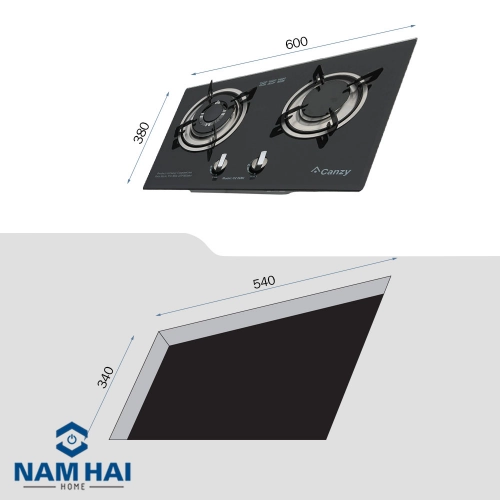 Bếp Gas m Canzy CZ-26MI với kích thước mặt bếp là 600 x 380 mm, kích thước khoét đá là 540 x 340 mm đạt tiêu chuẩn châu u, phù hợp với mọi không gian bếp Việt.