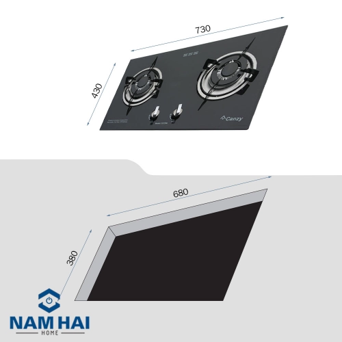 Bếp gas âm Canzy CZ-27MI có kích thước mặt bếp 730x430mm và kích thước khoét đá 680x380mm chuẩn quốc tế phù hợp với nhiều không gian bếp. Bếp được cấu tạo với 2 lò nấu bằng nhau giúp việc nấu ăn nhanh chóng và tiện lợi hơn. Mặt kính của bếp dày 8mm chịu lực chịu nhiệt cao.