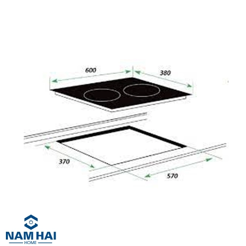 Kích thước mặt kính (mm) : 600 x 380 Kích thước cắt đá (mm) : 570 x 370 |