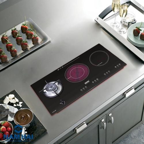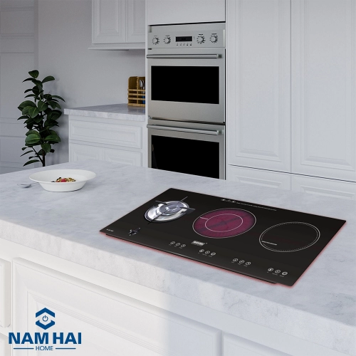 Bếp hỗn hợp gas từ Giovani G-323 GET là sản phẩm bếp hỗn hợp mang thương hiệu Giovani nhập khẩu Ý, là một trong những bếp được đánh giá cao về chất lượng, độ an toàn và sự tiện nghi cho người sử dụng. Bếp sẽ góp phần tô điểm cho căn bếp nhà bạn, giúp cho việc nấu ăn trở nên nhẹ nhàng và thú vị hơn. Bếp hỗn hợp gas từ Giovani G-323 GET có kích thước 850x430mm, được trang bị mặt kính Schott Ceran, dòng mặt kính cao cấp nhất chuyên sử dụng cho bếp hỗn hợp gas từ nhập khẩu. Kính có mức chịu nhiệt đến 1000°C, chịu lực tốt, chống xước và dễ vệ sinh. Đặc biệt kính không dẫn điện nên rất an toàn. Linh kiện bên trong bếp là mâm từ E.G.O và mâm nhiệt Hi-light cũng là những linh kiện cao cấp có độ bền cao. Bếp G-323 GET được thiết kế ba vùng nấu kết hợp 1 từ + 1 hồng ngoại +1 bếp ga với tổng công suất 4300W. Với ba vùng nấu bạn có thể nấu nhiều món cùng lúc, bếp sẽ đáp ứng hầu hết nhu cầu nấu nướng của các gia đình Việt. Vùng nấu từ giúp nấu ăn nhanh chóng, gia nhiệt nhanh. Vùng hồng ngoại có chế độ nấu 2 vòng nhiệt lại có thể sử dụng được tất cả các loại xoong nồi giúp cho công việc nấu ăn của các bà nội trợ trở lên tiện lợi và dễ dàng hơn. Hệ thống bảng điều khiển cảm ứng chạm siêu nhạy sử dụng được kể cả khi tay dính nước với 9 công suất tương ứng với các mức nhiệt khác nhau, điều khiển dễ dàng bằng một ngón tay. Mọi chương trình nấu đều được hiển thị qua đèn Led sắc nét để bạn điều chỉnh cho phù hợp với các món ăn. Bảng điều khiển đèn led đỏ hiển thị công suất sử dụng dễ dàng với cả người cao tuổi. Vùng bếp ga có hệ thống ngắt gas tự động an toàn,đánh lửa tự động bằng pin. Khay chống tràn bằng chất liệu Inox 304 không gỉ hứng thức ăn khi bị tràn hạn chế hỏng bếp. Kiềng bếp 4 chân chắc chắn làm bằng gang đúc siêu bền, kiềng có độ ma sát tốt giúp dụng cụ nấu ăn không bị trơn trượt trong quá trình chế biến, dễ dàng tháo rời để vệ sinh bếp. Núm vặn được làm từ hợp kim đẹp mắt, ấn tượng. Bếp có chế độ hầm tiết kiệm gas, kim phun gas nằm ngang chống tắc Phần thân bếp được làm từ chất liệu thép phủ sơn tĩnh điện giúp chống oxy hóa, bảo vệ được linh kiện bên trong của bếp cùng hệ thống quạt thông số và khe tản nhiệt giúp bảo vệ nâng cao độ bền linh kiện bên trong của bếp. Ngoài ra bếp hỗn hợp gas từ Giovani G-323 GET còn được tích hợp những tính năng thông minh hiện đại. Tính năng chống trào giúp bếp tự động ngắt khi nước bị trào ra ngoài, chức năng cảnh báo dư nhiệt vùng nấu nhằm đảm bảo an toàn cho người sử dụng tránh bỏng khi có lượng nhiệt dư trên mặt bếp. Bếp sẽ tự động tắt theo công suất nấu, hẹn giờ từng vùng nấu theo yêu cầu từng món ăn hoặc khi có việc bận mà bạn không phải đứng trông bếp. Chức năng khóa trẻ em, tất cả các phím sẽ tắt trừ phím nguồn, giúp bạn yên tâm nấu ăn khi nhà có trẻ nhỏ. Với tính năng thông minh, hệ thống điện an toàn cùng thiết kế sang trọng, bếp hỗn hợp gas từ Giovani G-323 GET đang là sản phẩm chiếm được lòng tin của nhiều gia đình Việt. Bếp bảo hành chính hãng 3 năm giúp khách hàng yên tâm sử dụng.