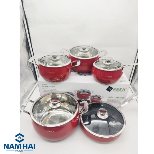 Bộ nồi Arber AN06SMD một sản phẩm dụng cụ nhà bếp không thể thiếu cho mọi nhà. Với thiết kế kiểu dáng cực kỳ sang trọng, cũng như công năng nấu tuyệt vời. Đây là một trong những sản phẩm đang được bán chạy trên thị trường hiện nay. Bộ nồi Arber AN06SMD 5 món làm bằng chất liệu inox 304, đáy bộ nồi 3 đáy siêu bền khi sử dụng, bộ nồi tiếp xúc nhiệt nhanh, êm, tản nhiệt đều khi nấu. Bộ nồi từ cao cấp ARBER AN06SMD đạt các tiêu chuẩn và chất lượng được cấp chứng chỉ sản phẩm. Thành phần của bộ nồi AN06SMD gồm: – 01 nồi có đường kính 18cm – dung tích 2L – 01 nồi có đường kính 20cm – dung tích 2,6L – 01 nồi có đường kính 24cm – dung tích 6L – 01 quánh đường kính 16cm – dung tích 1,4L – 01 Chảo đường kính 24cm Đặc tính của Bộ nồi từ cao cấp ARBER AN06SMD có thể sử dụng tiện lợi trên nhiều loại bếp như bếp từ, bếp gas, bếp điện, lò nướng, máy rửa bát… – Chất liệu được làm từ Inox 304, an toàn cho người sử dụng – Toàn bộ thân nồi, nắp nồi và tay cầm đều làm bằng lớp inox không gỉ 304. Loại inox này có khả năng nhiễm từ, nhiễm nhiệt thấp nên chỉ có một lượng nhiệt nhỏ được inox không gỉ 304 hấp thụ khiến cho phần thân nồi, nắp và tay năm được làm chắc chắn bằng hợp kim kẽm tạo độ bền cho sản phẩm. – Chảo tráng lớp chống dính Xylan Plus của công ty Whitford an toàn và siêu bền. Bộ nồi từ cao cấp ARBER AN06SMD dễ dàng vệ sinh, giữ nhiệt tốt. Thành nồi trơn bóng, chống bám dính, giúp rửa trôi nhanh chóng dầu mỡ và các loại vết bẩn cứng đầu. Bộ nồi từ cao cấp ARBER AN06SMD luôn là sự lựa chọn hoàn hảo cho mọi gia đình, bởi chất liệu inox 304 siêu bền, an toàn cho sức khỏe người dùng. Tính năng truyền nhiệt nhanh giúp món ăn nhanh chín, thơm ngon, giúp tiết kiệm nhiên liệu cũng như thời gian cho người nội trợ. Sản phẩm hứa hẹn mang đến sự hài lòng hơn cả mong đợi cho người sử dụng.
