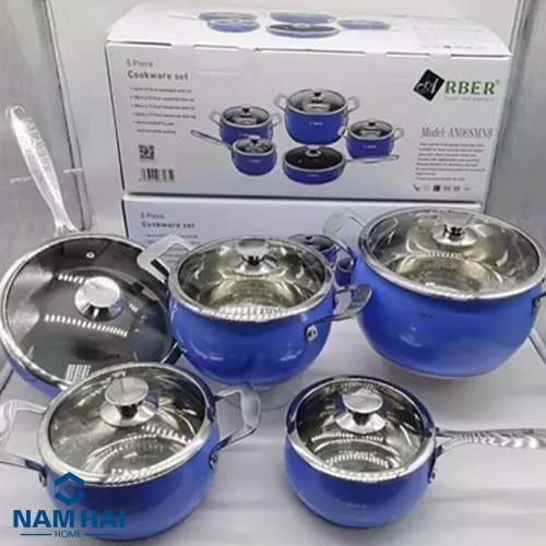 Bộ nồi Arber AN06SMNB một sản phẩm dụng cụ nhà bếp không thể thiếu cho mọi nhà. Với thiết kế kiểu dáng cực kỳ sang trọng, cũng như công năng nấu tuyệt vời. Đây là một trong những sản phẩm đang được bán chạy trên thị trường hiện nay. Bộ nồi Arber AN06SMNB 5 món làm bằng chất liệu inox 304, đáy bộ nồi 3 đáy siêu bền khi sử dụng, bộ nồi tiếp xúc nhiệt nhanh, êm, tản nhiệt đều khi nấu. Bộ nồi từ cao cấp ARBER AN06SMNB đạt các tiểu chuẩn và chất lượng được cấp chứng chỉ sản phẩm. Thành phần bộ nồi: – 01 nồi có đường kính 18cm – dung tích 2L – 01 nồi có đường kính 20cm – dung tích 2,6L – 01 nồi có đường kính 24cm – dung tích 6L – 01 quánh đường kính 16cm – dung tích 1,4L – 01 Chảo đường kính 24cm Đặc tính của Bộ nồi từ cao cấp ARBER AN06SMNB – Sản phẩm ARBER AN06SMNB có thể sử dụng tiện lợi trên nhiều loại bếp như bếp từ, bếp gas, bếp điện, lò nướng, máy rửa bát… – Chất liệu được làm từ Inox 304, an toàn cho người sử dụng – Toàn bộ thân nồi, nắp nồi và tay cầm đều làm bằng lớp inox không gỉ 304. Loại inox này có khả năng nhiễm từ, nhiễm nhiệt thấp nên chỉ có một lượng nhiệt nhỏ được inox không gỉ 304 hấp thụ khiến cho phần thân nồi, nắp và tay năm được làm chắc chắn bằng hợp kim kẽm tạo độ bền cho sản phẩm. – Chảo tráng lớp chống dính Xylan Plus của công ty Whitford an toàn và siêu bền. Bộ nồi từ cao cấp ARBER AN06SMNB dễ dàng vệ sinh, giữ nhiệt tốt. Thành nồi trơn bóng, chống bám dính, giúp rửa trôi nhanh chóng dầu mỡ và các loại vết bẩn cứng đầu. Bộ nồi từ cao cấp ARBER AN06SMNB luôn là sự lựa chọn hoàn hảo cho mọi gia đình, bởi chất liệu inox 304 siêu bền, an toàn cho sức khỏe người dùng. Tính năng truyền nhiệt nhanh giúp món ăn nhanh chín, thơm ngon, giúp tiết kiệm nhiên liệu cũng như thời gian cho người nội trợ. Sản phẩm hứa hẹn mang đến sự hài lòng hơn cả mong đợi cho người sử dụng.