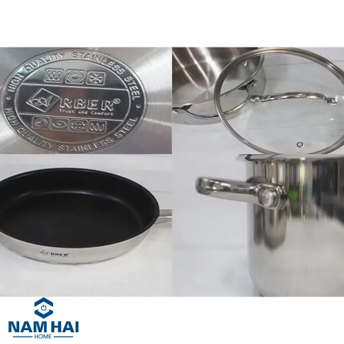 Bộ nồi chảo inox Arber DIAMOND 5 món thương hiệu nổi tiếng Arber, được sản xuất theo dây chuyền công nghệ hiện đại từ Đức. Đây là một trong những sản phẩm dụng cụ nhà bếp đang được ưa chuộng không thể thiếu trong mỗi gian bếp mà bạn không thể bỏ qua. Bộ nồi Arber DIAMOND 5 món làm bằng chất liệu inox 304, đáy bộ nồi 3 đáy siêu bền khi sử dụng, bộ nồi tiếp xúc nhiệt nhanh, êm, tản nhiệt đều khi nấu. Bộ nồi từ cao cấp ARBER đạt các tiêu chuẩn và chất lượng được cấp chứng chỉ sản phẩm. Bộ nồi chảo inox 5 món Arber DIAMOND thiết kế kiểu dáng sang trọng, màu sắc tinh tế, mang đến không gian nhà bếp sang trọng cho gia đình bạn. Bộ nồi chảo inox 5 món này đạt các tiêu chuẩn an toàn cho người dùng gồm: 01 nồi có đường kính 18cm – dung tích 2L 01 nồi có đường kính 20cm – dung tích 2,6L 01 nồi có đường kính 24cm – dung tích 6L 01 Xửng hấp 24cm – dung tích 1,4L. 01 Chảo có đường kính 24cm với nhiều kích thước khác nhau, đáp ứng nhu cầu từng nhu cầu nấu nướng của bạn. Sản phẩm sử dụng được với các loại bếp cả bếp điện từ, bếp từ Bộ nồi Arber DIAMOND có thể sử dụng tiện lợi trên nhiều loại bếp như bếp từ, bếp gas, bếp điện,lò nướng, máy rửa bát… Bộ nồi Arber DIAMOND với chất liệu được làm từ Inox 304, an toàn cho người sử dụng Chảo tráng lớp chống dính Xylan Plus của Công ty whitford an toàn và siêu bền Toàn bộ thân nồi, nắp nồi và tay cầm đều làm bằng lớp inox không gỉ 304. Loại inox này có khả năng nhiễm từ, nhiễm nhiệt thấp nên chỉ có một lượng nhiệt nhỏ được inox không gỉ 304 hấp thụ khiến cho phần thân nồi, nắp và tay năm được làm chắc chắn bằng hợp kim kẽm tạo độ bền cho sản phẩm. Lưu ý : Luôn đeo găng tay khi di chuyển nồi nấu nóng. Đảm bảo an toàn cho người dùng. Sản phẩm Bộ nồi Arber DIAMOND dễ dàng vệ sinh, giữ nhiệt tốt, thành nồi trơn bóng, chống bám dính, giúp rửa trôi nhanh chóng dầu mỡ và các loại vết bẩn cứng đầu. Bộ nồi chảo inox 3 đáy Arber DIAMOND 5 món luôn là sự lựa chọn hoàn hảo cho mọi gia đình, tối ưu nhu cầu nấu nướng của người nội trợ. Đây là sản phẩm với chất lượng tuyệt vời, mang đến những trải nghiệm tuyệt vời cho người sử dụng. Sản phẩm có chế độ bảo hành chính hãng 2 năm.