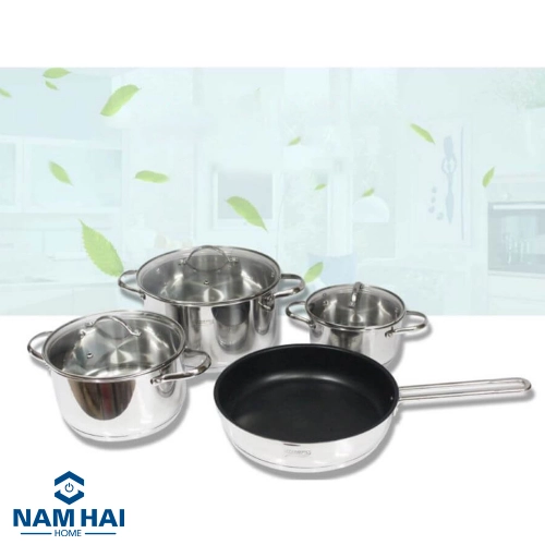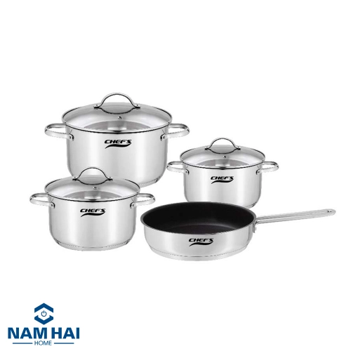 Bộ nồi CHEFS EH-CW4430 thương hiệu nổi tiếng Chefs, là một trong những thiết bị nhà bếp không thể thiếu trong mỗi gia đình, bởi vì chúng đóng vai trò rất lớn với việc chế biến thức ăn hằng ngày. Bộ nồi từ 4 chiếc Chef's EH-CW4430 với màu sắc sang trọng và trẻ trung, nồi từ với những kích thước khác nhau giúp mang lại khả năng nấu nướng tiện lợi hơn. Bộ nồi Inox Chef's EH-CW4430 với những kích thước khác nhau sẽ đem đến những khả năng nấu hoàn toàn khác nhau vô cùng tiện lợi như chảo 26cm có thành chảo cao giúp chống bắn dầu mỡ khi chiên, rán, nồi 16cm được sử dụng nhiều nhất để làm các món như thịt kho, rau luộc, nồi 20cm phù hợp để nấu canh, món om và nồi 24cm với kích thước lớn nhất có thể luộc được một con gà khoảng 2kg. Đáy nồi được thiết kế rời với 3 lớp inox – nhôm – inox, giúp đáy nồi dẫn từ đều, giữ nhiệt được lâu và ngăn ngừa tình trạng cháy khét xảy ra khi đang nấu. Thân nồi được chế tạo một lớp và khi lấy nhiệt từ đáy nồi sẽ làm nóng nhanh chóng để nấu ăn nhanh hơn. Bộ nồi từ 4 chiếc Chef's EH-CW4430 với nắp kính chịu nhiệt tốt siêu bền Nắp của nồi từ bốn chiếc Chef's được làm bằng kính chịu nhiệt trong suốt sẽ làm tôn được vẻ tinh tế cho nồi và còn giúp bạn quan sát thực phẩm dễ dàng khi đang nấu nướng. Viền nắp nồi từ 3 đáy được bọc inox bảo vệ kính trầy xước làm đứt tay khi sử dụng, bên trên nắp nồi còn đi kèm lỗ thông hơi giúp thoát hơi đều nên không bị nén khí khi nấu. Bộ nồi từ 4 chiếc Chef's EH-CW4430 với tay cầm chắc chắn Đặc biệt, tay cầm của nồi từ làm bằng chất liệu inox 202 dày dặn và chắc chắn được gắn vào thành nồi bằng đinh tán giúp bạn trong quá trình nấu nướng có thể mang đi mọi nơi. Bộ nồi gồm 4 chiếc nồi từ đều có thiết kế quai oval làm nồi trông nhẹ nhàng và đẹp hơn. Bộ nồi từ 4 chiếc Chef's EH-CW4430 luôn đi đầu về chất lượng, luôn làm hài lòng người sử dụng, đây thực sự là một sản phẩm tuyệt vời cần có trong mọi gian bếp Việt.
