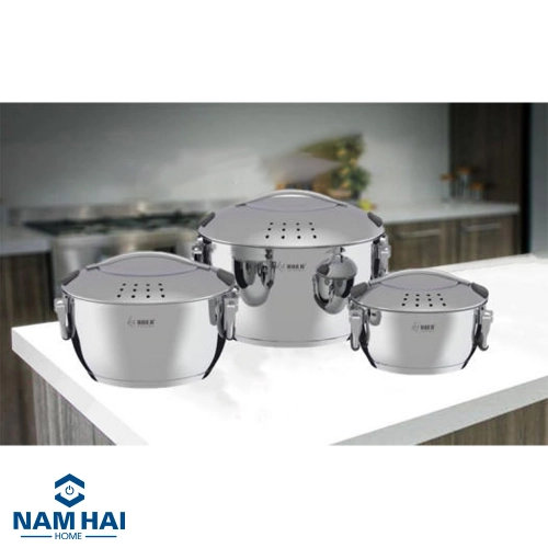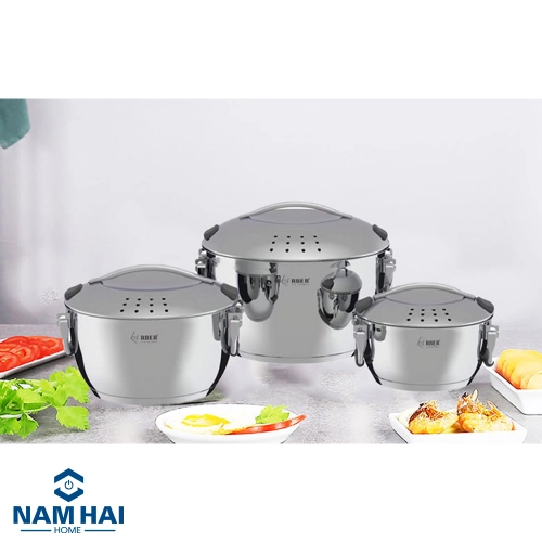 Bộ nồi inox 3 món Arber PHANTOM thương hiệu nổi tiếng Arnber được sản xuất theo dây chuyền công nghệ hiện đại từ Đức. Đây là một trong những sản phẩm đang được đông đảo người tiêu dùng tin chọn, với những tính năng nấu nướng đa dạng, nhanh chóng và tiện lợi. Bộ nồi inox 3 món Arber PHANTOM kiểu dáng sang trọng xếp vào được với nhau, toàn bộ thân nồi, nắp nồi và tay cầm đều làm bằng lớp inox không gỉ 304, loại inox này có khả năng nhiễm từ, nhiễm nhiệt thấp nên chỉ có một lượng nhiệt nhỏ được inox không gỉ 304 hấp thụ khiến cho phần thân nồi, nắp và tay cầm chỉ giữ ở mức ấm tránh gây bỏng cho người dùng. Bộ nồi inox 3 món này thiết kế thành nồi trơn bóng, chống bám dính giúp rửa trôi nhanh chóng dầu mỡ và các loại vết bẩn cứng đầu Bộ nồi đáy từ Arber PHANTOM có thể sử dụng tiện lợi trên nhiều loại bếp như bếp từ, bếp gas, bếp điện, lò nướng, máy rửa bát… Bộ nồi đáy từ này gồm: 1 nồi có đường kính 18cm – dung tích 2L, 1 nồi có đường kính 20cm – dung tích 2.6L, 1 nồi có đường kính 24cm – dung tích 6L, phù hợp, đáp ứng nhu cầu nấu nướng của từng món nấu, đặc biệt mang đến những món nấu thơm ngon trọn vị. Bộ nồi đáy từ Arber PHANTOM luôn là sự lựa chọn hoàn hảo cho mọi gia đình. Với kiểu dáng tinh tế, đẹp mắt, chất liệu inox 304 bền bỉ, sản phẩm hứa hẹn mang đến sự hài lòng hơn cả mong đợi cho người sử dụng. Sản phẩm có chế độ bảo hành chính hãng 2 năm.