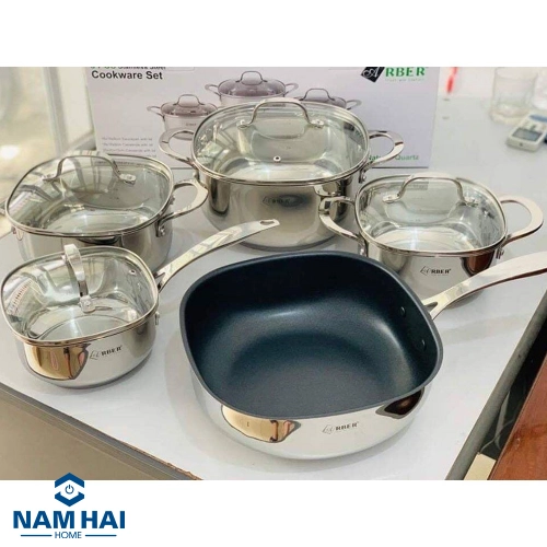 Bộ nồi inox Arber Natural 5 món thương hiệu nổi tiếng Arber, được sản xuất theo dây chuyền công nghệ hiện đại từ Đức. Đây là một trong những sản phẩm dụng cụ nhà bếp không thể thiếu trong mỗi gian bếp mà bạn không thể bỏ qua. Bộ nồi inox cao cấp Arber Natural đáy 3 lớp giúp truyền nhiệt nhanh hơn, giữ nhiệt lâu hơn giữ lại được nhiều vitamin cho thực phẩm, giúp tiết kiệm tối đa thời gian cũng như nhiên liệu nấu nướng. Bộ nồi inox 5 món Arber Natural thiết kế kiểu dáng sang trọng, màu sắc tinh tế, mang đến không gian nhà bếp sang trọng cho gia đình bạn. Bộ nồi chảo inox cao cấp Arber Natural 5 món này đạt các tiêu chuẩn an toàn cho người dùng gồm: - 01 nồi có đường kính 18cm - dung tích 2L - 01 nồi có đường kính 20cm - dung tích 2,6L - 01 nồi có đường kính 24cm - dung tích 6L - 01 quánh có đường kính 16cm - dung tích 1,4L - 01 Chảo có đường kính 24cm Với nhiều kích thước khác nhau, đáp ứng nhu cầu từng nhu cầu nấu nướng của bạn. Bộ nồi inox cao cấp 3 đáy Arber Natural 5 món thiết kế nắp bằng kính cường lực, chịu nhiệt siêu bền, có bo viền chống rơi vỡ, có đục lỗ thoát hơi chống trào, quai nồi hàn lạnh cách nhiệt có thể cầm nắm trực tiếp không bị nóng, lòng nồi được phân vạch định lượng, giúp dễ dàng và thuận tiện khi nấu nướng. Bộ nồi inox cao cấp Arber Natural 3 đáy này sử dụng thép cao cấp không gỉ 304 an toàn cho sức khỏe, đáy cấu tạo 3 lớp dùng tốt cho tất cả các loại bếp, chảo inox sử dụng lớp chống dính Xylan chịu nhiệt cao, không bị bong tróc, thành nồi trơn bóng, chống bám dính, giúp rửa trôi nhanh chóng dầu mỡ và các loại vết bẩn cứng đầu. Bộ nồi inox 3 đáy Arber Natural 5 món luôn là sự lựa chọn hoàn hảo cho mọi gia đình, tối ưu nhu cầu nấu nướng của người nội trợ. Đây là sản phẩm với chất lượng tuyệt vời, mang đến những trải nghiệm tuyệt vời cho người sử dụng. Sản phẩm có chế độ bảo hành chính hãng 2 năm.