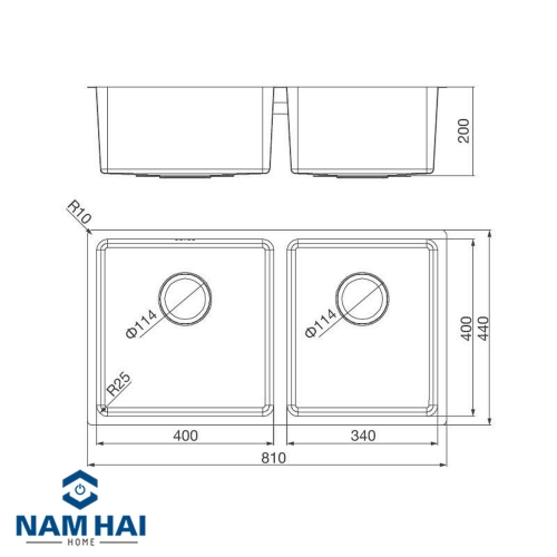 Chậu với kích thước: W810 x D440 x H200mm phù hợp lắp đặt với mọi không gian bếp.