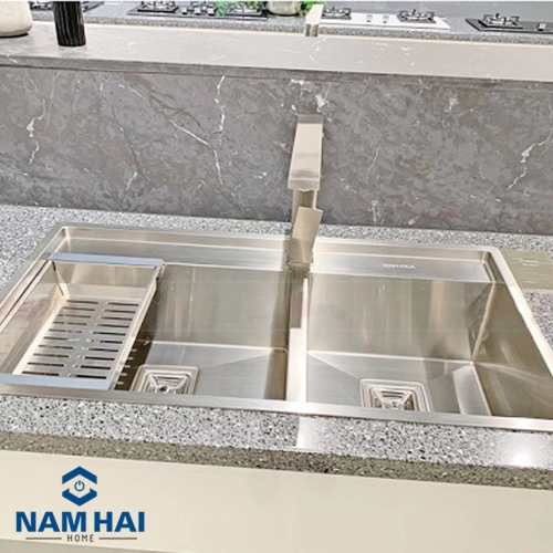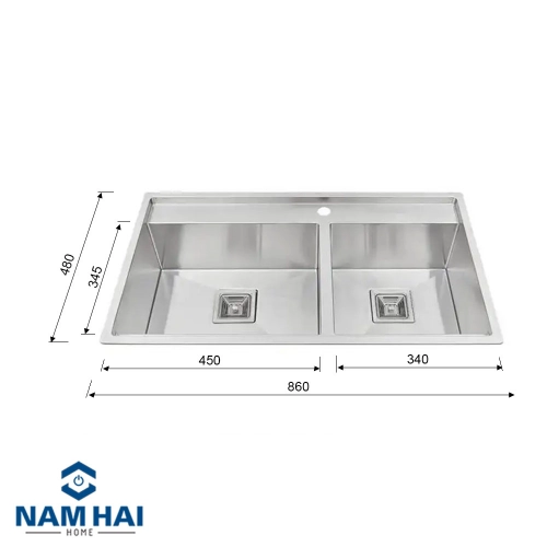 Chậu với kích thước: W860 x D480 x H220mm phù hợp lắp đặt với mọi không gian bếp.