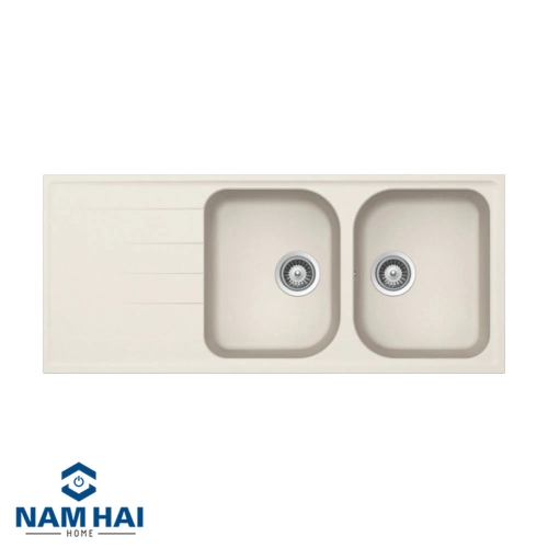 Chậu rửa bát 2 hố Hafele HS18 GED2R80 sản xuất từ chất liệu đá nhân tạo Grantec không bị ăn mòn, chống trầy xước và giữ màu bền lâu.