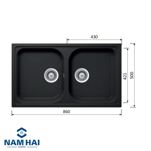 Chậu rửa bát Hafele HS19 GEN2R90 thiết kế 2 hố 1 bàn chờ với kích thước Kích thước chậu rửa là 860D x 500 Rmm. Độ sâu bồn là 205mm. Với độ dày lý tưởng 1,2mm tạo độ chắc chắn tuyệt vời cho chậu.