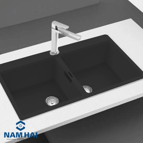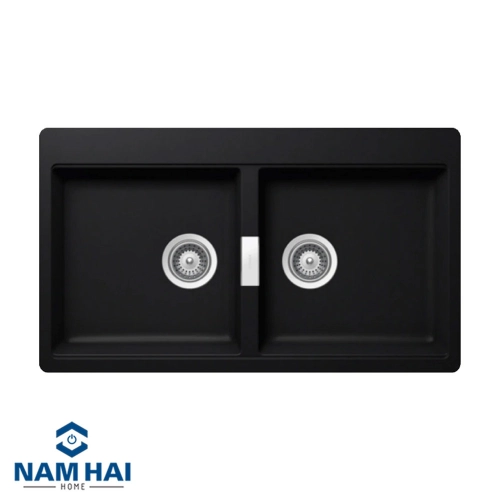 Chậu đá Hafele HS20 GKN2S90 màu đen hiện đại, là chậu rửa bát nhập khẩu từ Đức, Chất liệu của chậu bằng đá nhân tạo Gransilk : Sản phẩm được làm từ 80% là đá thạch anh, 15% là acrylic và 5% từ những nguyên liệu đặc biệt, cao cấp chịu nhiệt, chịu lực tốt, an toàn cho người sử dụng, bền bỉ với thời gian. Sản phẩm được sản xuất bằng phương pháp đặc biệt với những sợi kết dính tự nhiên và hệ thống sợi thủy tính dưới đáy chậu. Công nghệ này giúp chậu đá Hafele HS20-GKN2S90 chắc chắn và chịu va đập tốt hơn