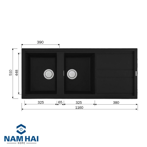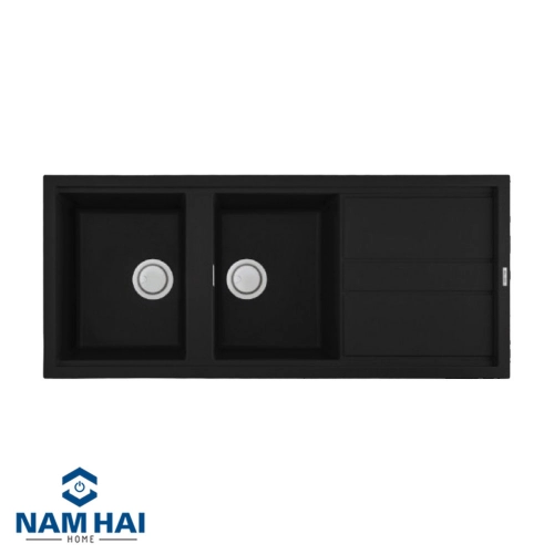 Chậu rửa Malloca NERO K-50040 thuộc dòng chậu rửa 2 hố vuông 1 bàn chờ tiện lợi với kích thước W1160 x D510 x H200mm, giúp lắp đặt linh hoạt với mọi không gian bếp.