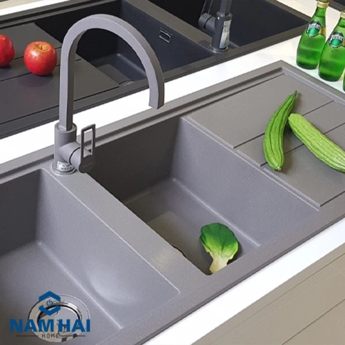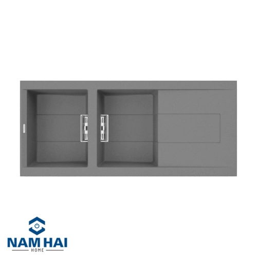 Chậu rửa Malloca SMART K-500 thuộc dòng chậu rửa 2 hố vuông 1 bàn chờ tiện lợi làm từ bột đá Granite tự nhiên và chất kết dính với bề mặt phủ nano bạc diệt khuẩn 100% chịu được nhiệt độ cao 345ºC