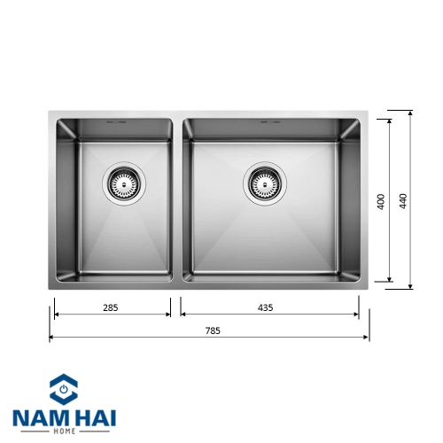 Thiết kế của chậu QUATRUS R15 285/435-IU kích thước phù hợp với nhu cầu sử dụng chiều dài 785mm - rộng 440mm lắp âm vừa vặn cho lỗ đá dài 775m - rộng 410mm khi lắp nổi hoặc 745mm*400mm khi lắp âm.