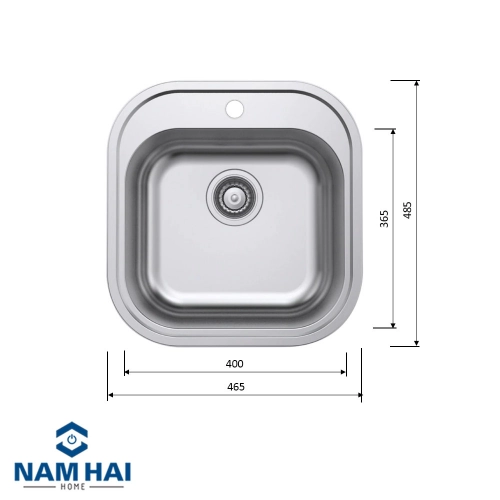 Thiết kế của chậu HS19-SSN1R50 kích thước phù hợp với nhu cầu sử dụng chiều dài 46.5 cm - rộng 48.5 cm lắp nổi vừa vặn cho lỗ đá dài 44,2cm - rộng 46,2 cm.