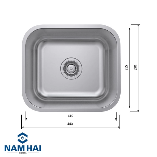 Thiết kế của chậu HS20-SSN1R50 kích thước phù hợp với nhu cầu sử dụng chiều dài 44cm - rộng 39cm lắp âm vừa vặn cho lỗ đá dài 41cm - rộng 35.5 cm.