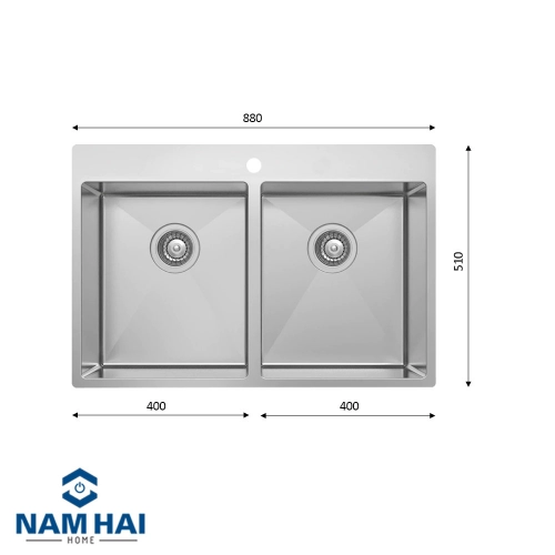 Chậu inox HS20-SSN2S90 có kích thước ngăn phải và ngăn trái bằng nhau dài 40cm - rộng 40cm, độ sâu 20 cm rộng rãi, có thể rửa nhiều đồ dùng cùng lúc. Chậu rửa chén lắp âm dễ dàng lắp đặt với kích thước lỗ đá 85.6 cm, chiều rộng 48.6 cm phù hợp sử dụng không gian bếp chung cư, nhà ở.