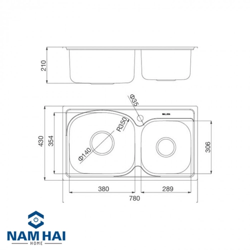 Chậu với kích thước: W780 x D430 x H210mm phù hợp lắp đặt với mọi không gian bếp.