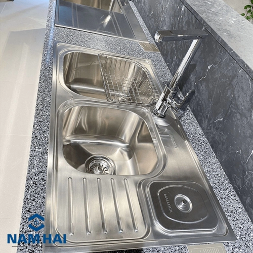 Chậu rửa chén Malloca MS 1024 là dòng chậu rửa 2 hố và 1 bàn chờ cánh phải. Phụ kiện kèm theo có bộ xả và rổ inox