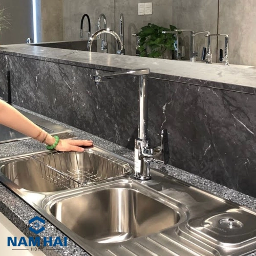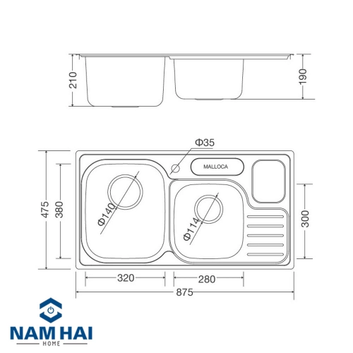 Chậu với kích thước: W875x D475 x H220mm phù hợp lắp đặt với mọi không gian bếp.