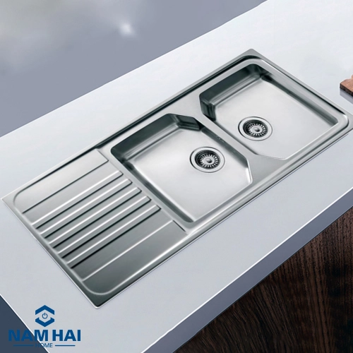 Chậu rửa Teka PREMIUM 2B 1D nhập khẩu nguyên chiếc từ châu Âu gồm 2 hộc rửa kết hợp với bàn chờ tiện dụng tạo nên không gian rửa rộng rãi thoáng mát. Chậu rửa Teka PREMIUM 2B 1D Nhập khẩu từ châu Âu gồm 2 hộc rửa kết hợp với bàn chờ tiện dụng tạo nên không gian rửa rộng rãi thoáng mát, giúp bạn luôn có cảm giác thoải mái dễ chịu khi rửa nhiều bộ chén đĩa hoặc số lượng thực phẩm lớn. Chậu được thiết kế tinh tế bằng chất liệu thép không gỉ AISI 304 sáng bóng, dễ dàng vệ sinh, chậu lắp nổi, có thể đảo chiều, phụ kiện theo kèm bộ xả 3 1/2 và xả tràn. Chậu rửa Teka PREMIUM 2B 1D được thiết kế kích thước tổng quát 1160.500mm có thể đảo chiều khi lắp đặt,là sản phẩm được nhiều người tiêu dùng lựa chọn. Teka Premium 2B 1D có khả năng rửa, tráng bát đũa, rửa rau củ quả một cách dễ dàng tiện lợi. Hai hố chậu sâu, rộng và liền kề nhau nên bạn có thể sử dụng cùng lúc cho công việc sơ chế thực phẩm trong căn bếp. Một bàn chờ liền cạnh hố chậu với các đường gờ nổi tạo rãnh thoát nước nhanh xuống hố chậu đồng thời tạo điểm nhấn cho chiếc chậu. Bàn chờ trong chậu Premium 2B 1D kích thước 440 x 400 mm đủ rộng cho công việc sơ chế thực phẩm như khả năng cắt, thái rau củ quả, hay đặt để ráo các loại thực phẩm vừa sơ chế xong Chậu rửa Teka Premium 2B 1D là một trong những mẫu chậu rửa được ưa chuộng hiện nay, Chậu đáp ứng tối đa nhu cầu người sử dụng cả về kiểu dáng lẫn tính năng hoạt động.