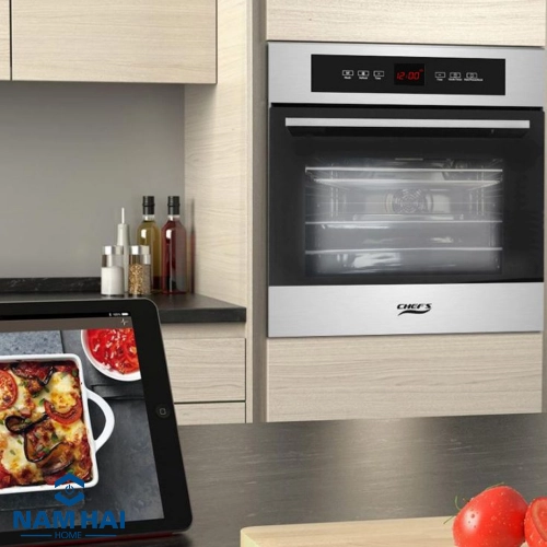 Lò nướng Chefs EH-BO600S mang thương hiệu thiết bị nhà bếp nổi tiếng Chefs; với kiểu dáng và điểm nhấn không gian lò nướng EH-BO600S đã đang và sẽ là một sản phẩm chiếm được lòng tin của đông đảo người tiêu dùng. Lò nướng Chefs EH-BO600S có kích thước 59.5 x 59.5 x 57.5cm, được thiết kế theo tiêu chuẩn của Châu Âu với nhiều tính năng an toàn tiện dụng, đồng thời đảm bảo tối ưu hiệu quả nấu nướng cho công việc của người nội trợ trở nên nhẹ nhàng, đơn giản hơn rất nhiều. Lò nướng Chefs EH-BO600S được trang bị một bảng điều khiển cảm ứng thông minh hiện đại sắc nét nhờ màn hình LED nổi bật phía trên cửa lò giúp người sử dụng có thể thao tác một cách thuận tiện, nhanh chóng nhất, bên trong lò có đèn chiếu sáng trong quá trình nướng tiện lợi. Thiết bị còn đi kèm theo phụ kiện vỉ và khay nướng cao cấp giúp tối ưu cho người dùng thực hiện được các món nướng thơm ngon, chín vàng như ở nhà hàng rất dễ dàng và đơn giản. Lò nướng âm tủ Chefs EH-BO600S điều chỉnh mức nhiệt từ 50-250 độ C, với 8 chương trình tự động nướng, giúp bạn có thể nấu đa dạng món ăn. Lò có công suất 3010W hoạt động cực kỳ mạnh mẽ và bền bỉ, lò có thiết kế đạt tiêu chuẩn an toàn tiện dụng của châu Âu với công nghệ nướng 3D giúp nhiệt lượng được lưu thông đều khắp khoang lò sẽ giúp cho người nội trợ có thể nhanh chóng, dễ dàng chế biến được các món nướng thơm ngon, chín vàng mà không phải tốn nhiều thời gian và công sức. Bên cạnh đó, lò được hoàn thiện tỉ mỉ đến từng chi tiết với chất liệu kính đen cao cấp và cửa kính cách nhiệt 3 lớp tiếp tuyến ngăn không cho nhiệt lượng thất thoát ra ngoài làm giảm hiệu năng nấu nướng cũng như tiêu hao năng lượng đồng thời đảm bảo an toàn cho người dùng hoàn toàn yên tâm trong khi sử dụng lò. Ngoài ra, lò nướng âm tủ Chefs EH-BO600S có dung tích 56 lít thích hợp cho việc chế biến nhiều món ăn khác nhau. Bên cạnh đó, lò còn được trang bị 8 chức năng nướng tiện dụng cho bạn thoải mái lựa chọn thực đơn phù hợp với khẩu vị của các thành viên trong gia đình mình. Tuy sử dụng với nhiều chức năng nướng tiện lợi, nhưng sản phẩm chỉ tiêu tốn nhãn năng lượng ở mức A. Lò nướng âm tủ Chefs EH-BO600S hiện đang là một trong những lò nướng được rất nhiều các bà nội trợ trên khắp thế giới yêu thích và tin dùng nhờ thiết kế chuyên dụng và những tính năng tiện dụng được tích hợp của mình như: khóa an toàn đối với trẻ em, chế độ hẹn giờ tự tắt thông minh. Với những ưu điểm nổi bật như trên thì Lò nướng Chefs EH-BO600S xứng đáng là một trong những người bạn đồng hành thân thiết nhất của người nội trợ, là vật dụng không thể trong gian bếp của mỗi gia đình hiện nay, nhất là trong cuộc sống đầy năng động và luôn bận rộn đối với những người nội trợ vừa phải làm nhiều công việc lại còn chăm sóc cho bữa ăn của gia đình mình.