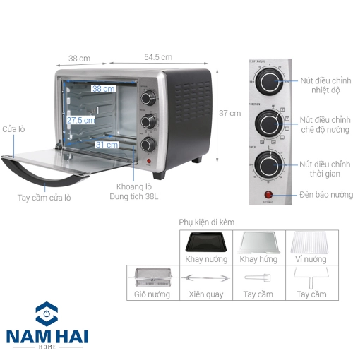 Nướng dưới, Nướng trên có quạt đối lưu, Nướng trên có xiên quay, Nướng trên dưới, Nướng trên dưới có nướng xiên quay và quạt đối lưu, Nướng trên dưới có quạt đối lưu |