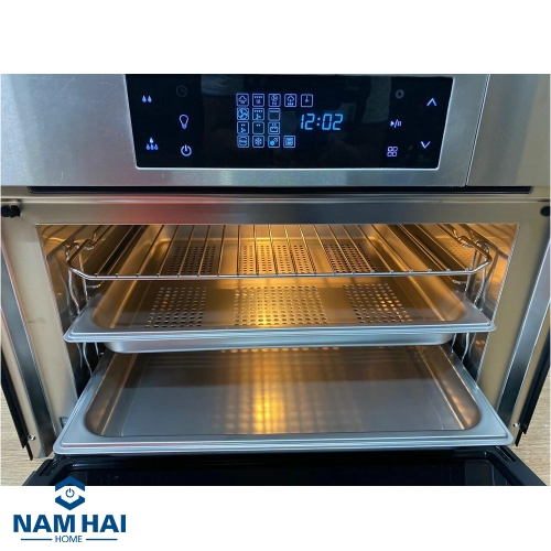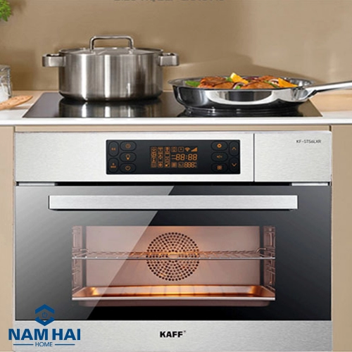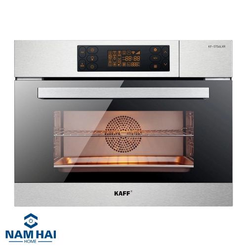 Lò nướng kết hợp hấp âm tủ Kaff KF-ST56LXR thương hiệu Kaff là một thiết bị nhà bếp cao cấp được sản xuất theo công nghệ hiện đại, nhập khẩu nguyên chiếc từ Malaysia. Đây là một trong những sản phẩm lò nướng đang được đông đảo người tiêu dùng tin chọn, bởi tính năng nướng thực phẩm dựa trên cơ chế đối lưu nhiệt, kết hợp chế độ hấp đa năng hiện đại và tân tiến, an toàn và bền bỉ. Lò nướng kết hợp hấp âm tủ Kaff KF-ST56LXR hoạt động dựa trên cơ chế đối lưu nhiệt hiện đại và tân tiến với luồng nhiệt lượng luôn phân bố đều khắp lò. Vì vậy, thực phẩm sẽ chín nhanh và đều hơn mà vẫn có được màu vàng giòn hấp dẫn. Lò sử dụng bảng điều khiển thông minh với màn hình hiển thị Led to rõ cùng các phím bấm cảm ứng cực nhạy, bố trí trực quan, hợp lý, hiển thị đầy đủ các chức năng của lò cho phép người dùng dễ dàng thao tác, sử dụng lựa chọn chế độ phù hợp với nhu cầu món ăn. Lò hấp kết hợp nướng Kaff KF-ST56LXR với thiết kế lắp âm tủ và được tích hợp 8 chế độ nướng khác nhau gồm 5 mức công suất nướng và 4 chương trình kết hợp: Đối lưu, hấp kết hợp nướng. Thiết bị tích hợp 13 chức năng đảm bảo đem lại sự tiện lợi nhất cho người dùng. Lò nướng kết hợp hấp âm tủ Kaff KF-ST56LXR có thiết kế kiểu lắp âm sang trọng và hiện đại với chất liệu thân máy làm từ inox cao cấp không hoen rỉ, chống bám bụi, luôn mang vẻ sáng bóng và giữ được độ bền đẹp tối đa theo thời gian. Cửa lò làm từ kính cường lực màu đen phối inox chống dấu vân tay cách nhiệt có khả năng giữ nhiệt cực tốt, ngăn không cho nhiệt thoát ra ngoài khoang lò, đồng thời đảm bảo tính thẩm mỹ và an toàn cho người sử dụng. Lò với thiết kế khoang lò rộng rãi, có đèn chiếu sáng halogen và dung tích lớn 56 lít, cùng với thể tích chứa nước 1,1 lit. lò nướng âm tủ này cho phép bạn có thể chế biến một lượng thực phẩm lớn để dùng cho cả nhà chỉ trong một lần nấu rất tiện dụng. Lò nướng kết hợp hấp âm tủ Kaff KF-ST56LXR còn tích hợp vỉ và khay nướng bằng thép cao cấp phù hợp để chế biến nhiều loại thực phẩm sẽ giúp tối ưu hóa cho công việc nấu nướng của bạn trở nên nhẹ nhàng, nhanh chóng hơn rất nhiều. Đặc biệt hơn, lò nướng kết hợp hấp âm tủ Kaff KF-ST56LXR còn có chế độ tự động làm sạch bằng phương pháp nhiệt phân Catalytic giúp cho khoang lò luôn sạch sẽ sau mỗi lần sử dụng, từ đó tiết kiệm được không ít thời gian và công sức lau chùi cho người nội trợ. Lò nướng kết hợp hấp âm tủ Kaff KF-ST56LXR còn được trang bị chế độ hẹn giờ thông minh cho phép người dùng cài đặt thời gian nướng vừa đủ cho món ăn. Lò còn có tính năng tự ngắt khi quá nhiệt và khi không sử dụng, đảm bảo tính an toàn cho người sử dụng. Lò nướng kết hợp hấp âm tủ Kaff KF-ST56LXR hứa hẹn mang đến những trải nghiệm tuyệt vời cho người sử dụng với tính năng hiện đại và kiểu dáng sang trọng. Máy được bảo hành chính hãng 2 năm.