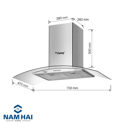 Máy hút mùi CZ 3770Q có kích thước khá nhỏ gọn, chỉ khoảng 700mm nên phù hợp lắp đặt trong nhiều không gian nhà bếp lớn nhỏ khác nhau. Điểm nhấn của sản phẩm chính là tấm kính cong cường lực sáng bóng với khả năng chịu lực, chống sốc nhiệt cực tốt. Bên ngoài thân máy sử dụng chất liệu inox cao cấp không gỉ và được sơn thêm lớp tĩnh điện càng giúp độ bền của máy thêm hoàn hảo.