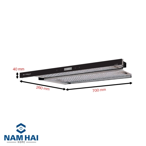 Máy hút mùi âm tủ EH_70AF86B có kích thước 700R x 260S x 500. Màu đen phù hợp với mọi kiểu màu tủ bếp. Phím điều khiển công tắc bấm Độ ồn tối đa <46dB. Máy hút mùi Eurosun EH-70AF86B còn có tác dụng rất tốt trong việc làm sạch không khí. Loại bỏ khí độc tạo không gian dễ chịu. Giúp thoáng mát và sạch sẽ cho căn bếp của bạn