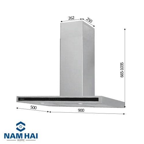 Máy Hút Mùi Malloca ZETA K1573 có kích thước máy hút mùi: W900 x D500 x H650-1035)mm phù hợp với mọi không gian bếp của bạn.