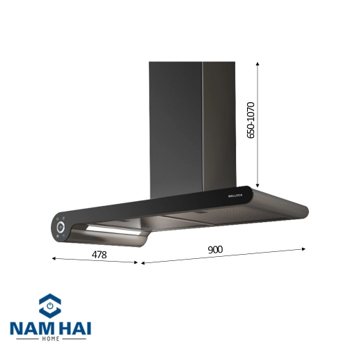 Kích thước máy hút mùi: W900 x D478 x H(650-1070)mm