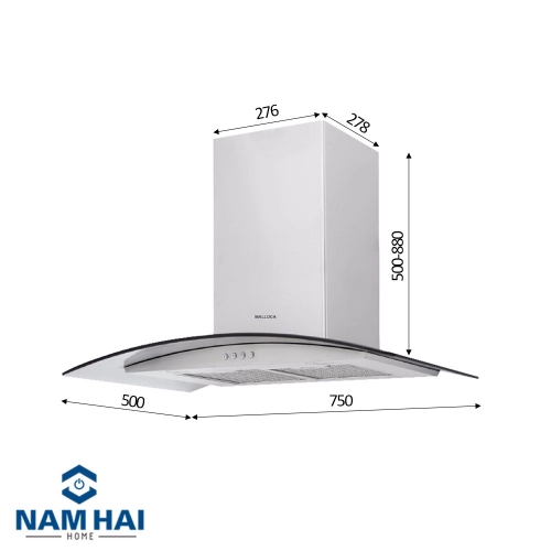 Máy hút mùi Malloca MC 750E chính hãng Malloca thiết kế đẹp, tính thẩm mỹ cao, theo kiểu dáng máy hút khử mùi áp tường phù hợp với nhiều không gian bếp. Các chi tiết thân máy, lưới lọc, đèn chiếu sáng, hệ thống điều khiển đều được kết hợp hài hòa, tạo nên một tổng thể đẹp mắt, góp phần làm cho không gian bếp của bạn thêm phần nổi bật hơn.