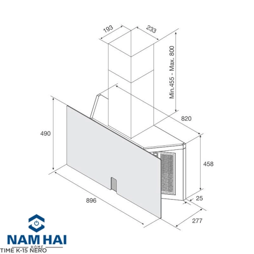 Máy hút mùi áp tường Malloca TIME K-15 NERO thương hiệu nổi tiếng Malloca, được sản xuất theo dây chuyền công nghệ hiện đại từ Ý, đây là dòng máy hút mùi có thiết kế kính Ceramic màu đen vát cạnh tinh tế , sang trọng, chịu lực và nhiệt tốt, chống trầy xước, chống bám bụi bẩn dễ dàng vệ sinh, không chỉ là một thiết bị hỗ trợ trong việc làm sạch bầu không khí mà còn giúp tăng tính thẩm mỹ cho căn bếp nhà bạn. Sản phẩm có kích thước W896 x D277 x H(913-1258)mm được lắp áp sát tường phù hợp với nhiều không gian bếp khác nhau.