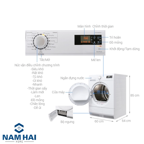 Cảm biến khối lượng Smart Sensor, Hẹn giờ sấy, Sấy đảo chiều giảm nhăn, Sấy đồ len |