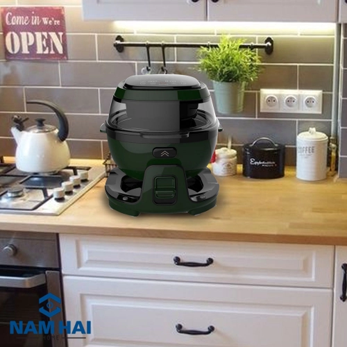 Nồi chiên không khí Canzy CZ-KG07 thiết kế kiểu dáng độc đáo, giỏ chiên xoay 180 độ có thể xoay nghiêng nồi để đảo trộn thức ăn tự động, vỏ ngoài được làm bằng nhựa cách điện, cách nhiệt cao, nắp kính cường lực trong suốt giúp dễ dàng quan sát thực phẩm trong quá trình nấu. Nồi chiên không khí này sử dụng chất liệu an toàn vệ sinh thực phẩm, được kiểm nghiệm an toàn với sức khỏe con người, không chứa các kim loại nặng: Pb, Cd, As, không phát hiện các chất độc: Phenol, Formaldehyde, Vinylchlorid, cặn thô… gây ảnh hưởng đến sức khỏe người sử dụng.