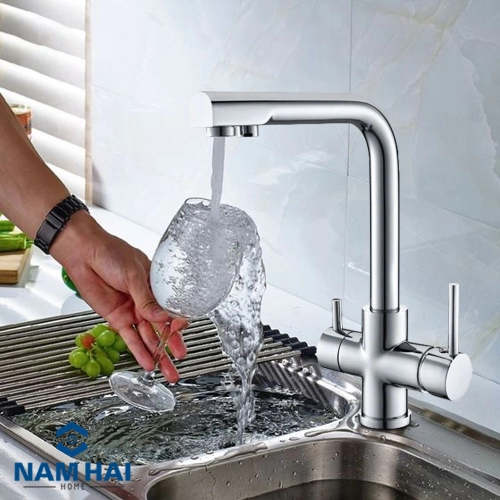 Vòi rửa bát Hafele HT19-CH2F285 có hai đường nước nóng/lạnh phù hợp với mục đích sử dụng nhất khi cần sử dụng nước nóng trong mùa lạnh ở nước ta giúp cho việc rửa bát đũa trở nên sạch sẽ, đơn giản hơn rất nhiều.Vòi 3 đường nước nóng/lạnh và nước lọc riêng biệt rất tiện lợi, đảm bảo sức khỏe.